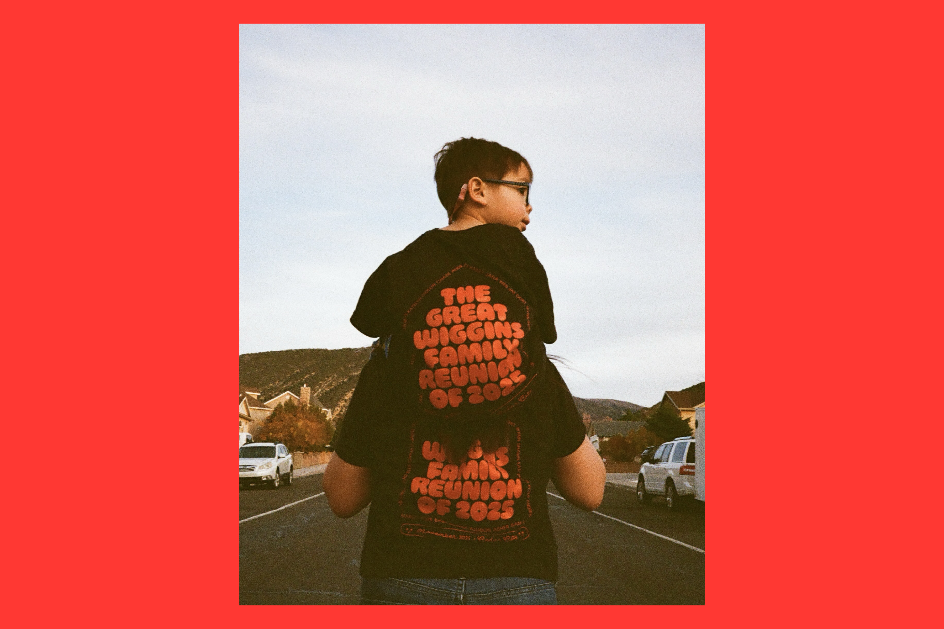 Logo and t-shirt design for the Wiggins family to celebrate our 2025 family reunion.The logo on the front of the shirt is made of three 5-pointed stars, a reference to our family crest. By removing and rearranging the side stars’ inner points, a ‘W’ is formed in the negative space.